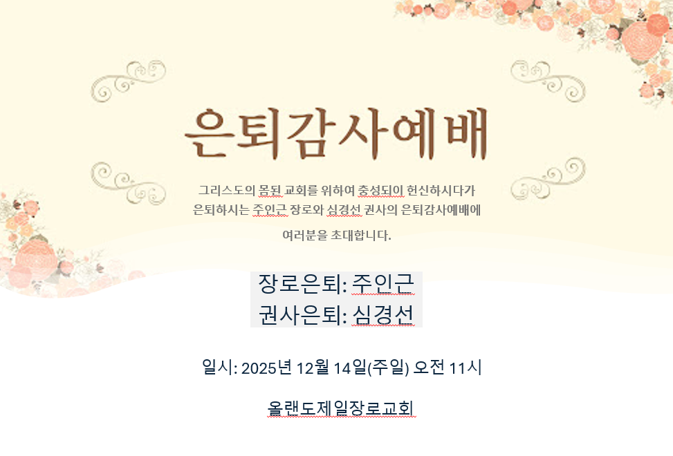 은퇴 감사 예배(주인근장로, 심경선권사)